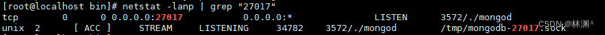 2、 查看mongodb是否已经启动成功,查看一下进程当中的端口号,
