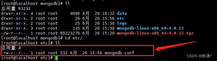 tar -zxvf mongodb-linux-x86_64-4.0.13 #文件名根据你自己的压缩包文件名来2、创建mongodb数据存储文件和日志文件