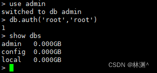 首先使用use admin通过db.auth(‘root’,‘密码’) 输出1就是验证成功。