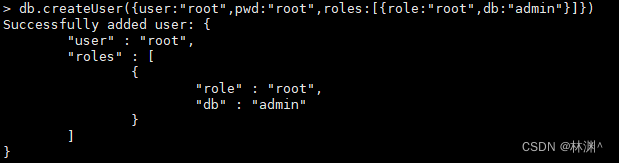 db.createUser({user:"root",pwd:"root",roles:[{role:"root",db:"admin"}]})