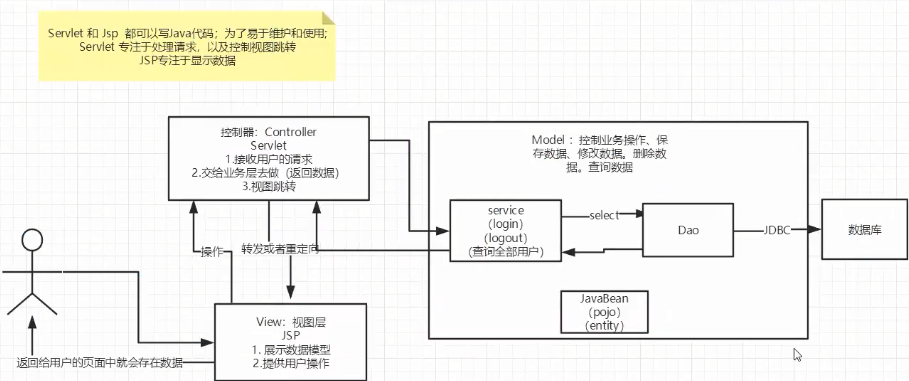 用户要么走jsp,要么走servlet,两者都能拿写java代码,在这种情况下,为了易于维护和使用,通常有以下约定:
