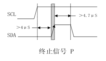 结束信号: SCL 为高电平时, SDA 由低电平向高电平跳变。