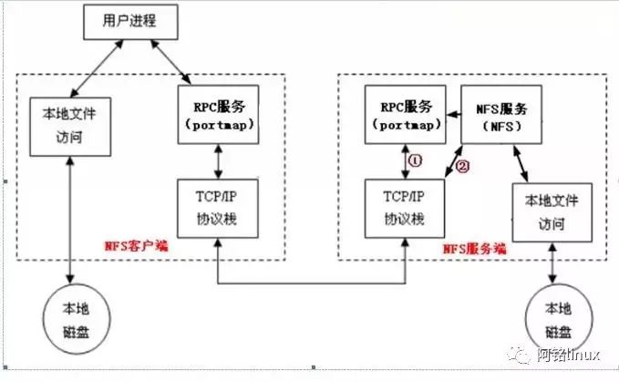 由于NFS的各项功能都需要向RPC服务(即portmap或rpcbind)注册,所以RPC服务(即portmap或rpcbind服务)才能获取到NFS服务的各项对应的端口号(portnumber)、PID、NFS在主机所监听的IP等,而NFS客户端才能够通过向RPC服务(即portmap或rpcbind服务)询问从而找到正确的端口。