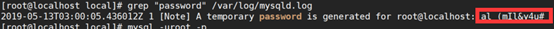 此时MySQL已经开始正常运行,不过要想进入MySQL还得先找出此时root用户的密码,通过如下命令可以在日志文件中找出密码: