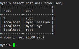 (4) 使用“select host,user from user;”查看修改是否成功。