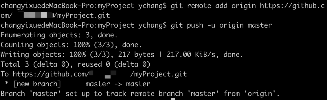 2. 把本地库关联到远程库:git remote add origin https://github.com/XXX/myProject.git