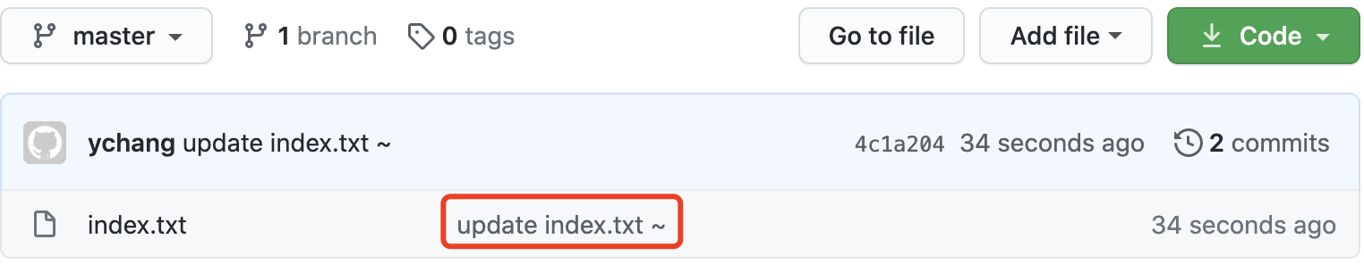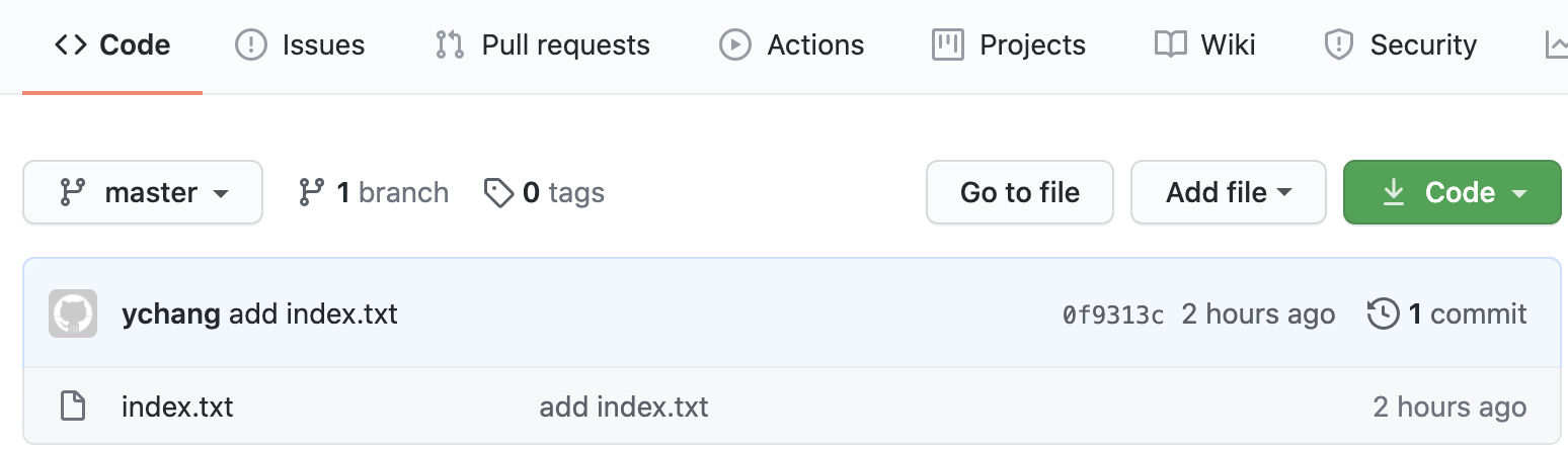 [master (root-commit) 0f9313c] add index.txt