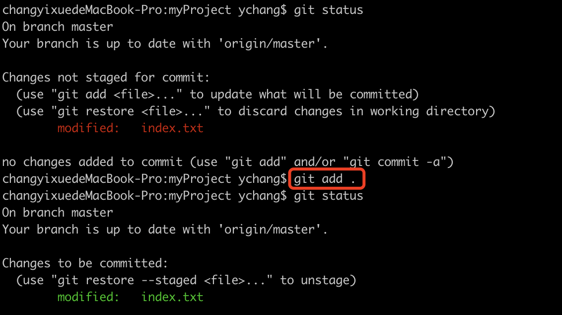 changyixuedeMacBook-Pro:myProject ychang$ git add .