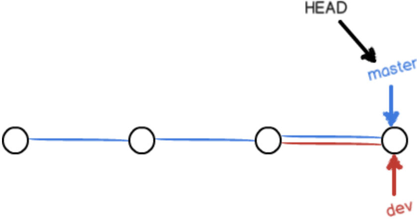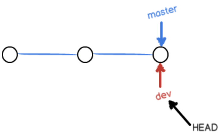 3. 若创建新的分支,例如dev。相当于git创建了一个指针叫dev,首先指向master相同的提交,然后再把HEAD指向dev,就表示当前分支在dev上。