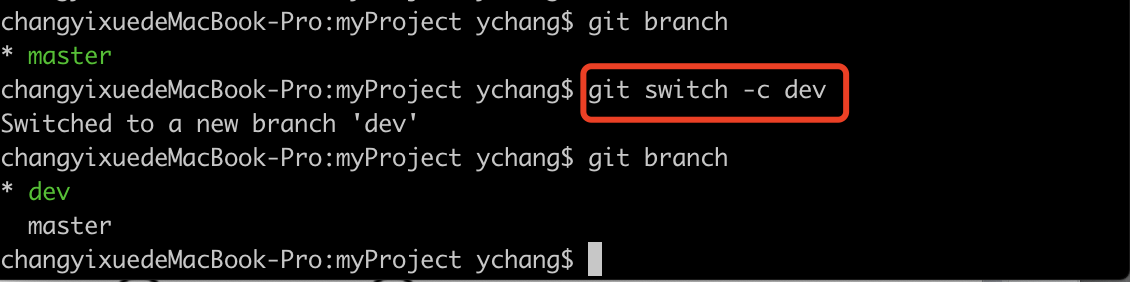 changyixuedeMacBook-Pro:~ ychang$ cd /Users/ychang/myProject