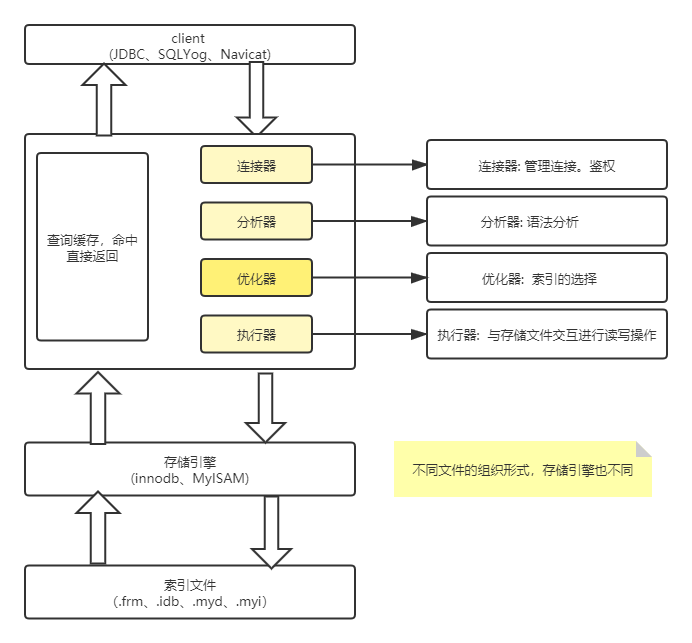 不同文件的组织形式,使用的存储引擎也不同