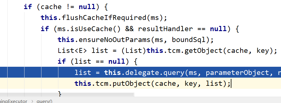 selectList()方法里面的executor.query()里面又一个query()方法的delegate.query(ms,param,....)方法