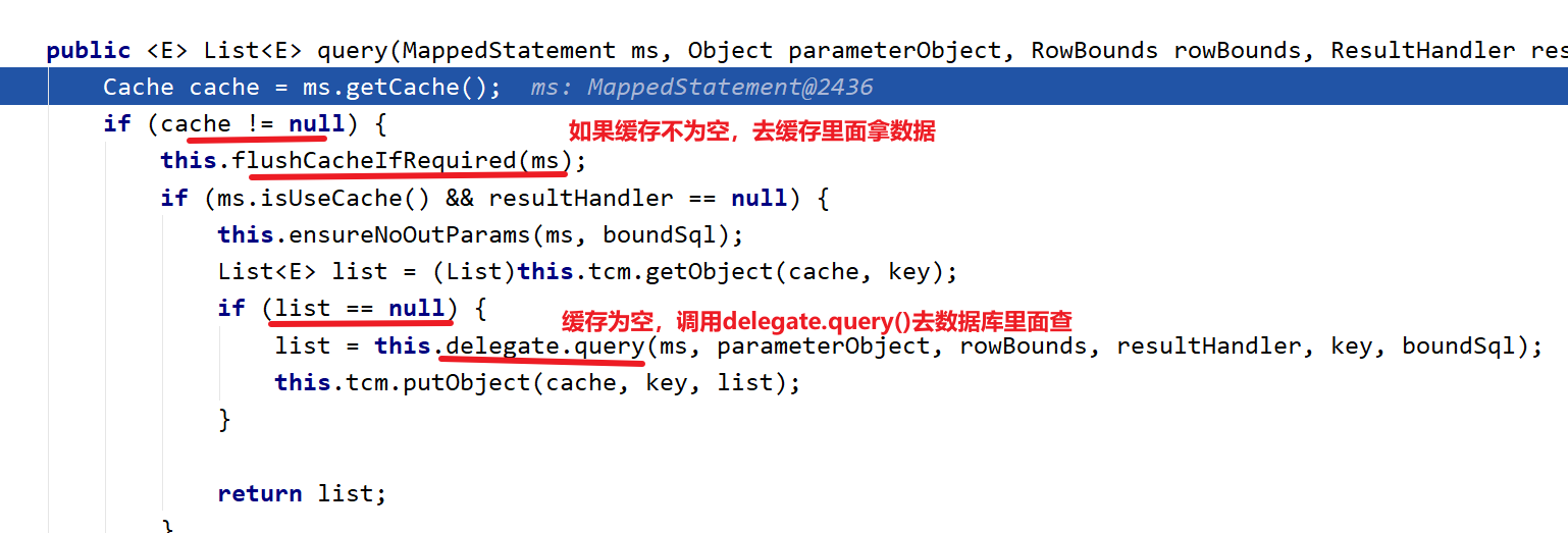 可以看到调用了queryFromDatabase(ms,param,.....)方法,中文翻译过来就是从数据库里面查