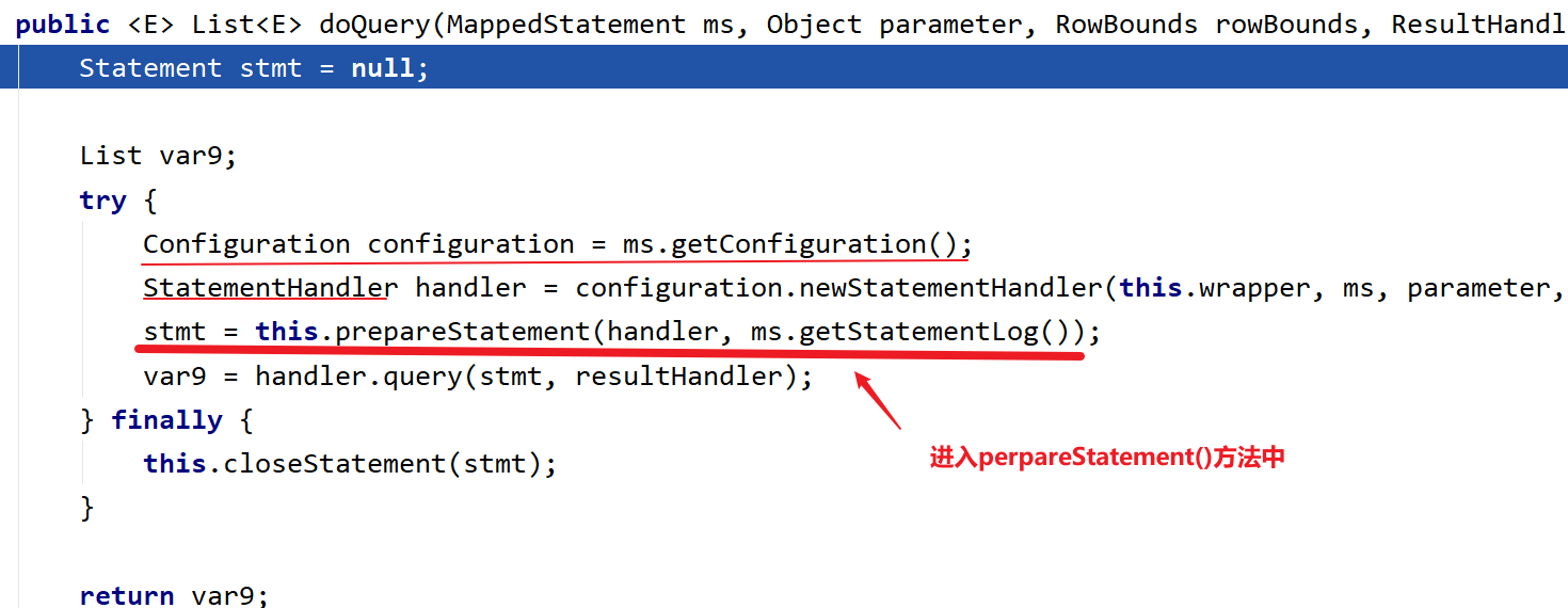 跳出来回到doQuery()方法,接下来执行handler.query()