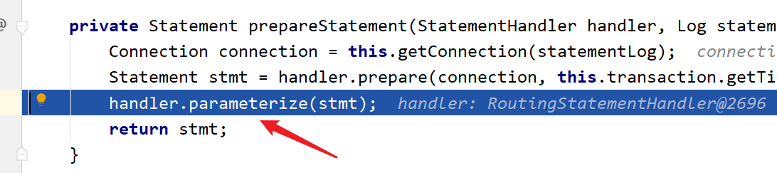 【重点】如下图,进入parameterize()方法后,执行下去,dalegate:PreparedStatementHandler