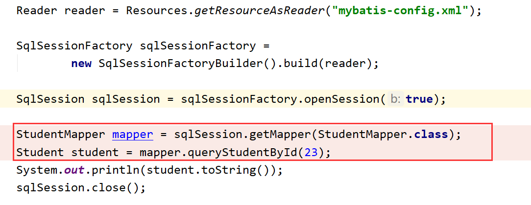 - mapperInterface,代理接口对象,值为com.lyx.mybatis.dao.StudentMapper,也就是我写的StudentMapper.java接口类