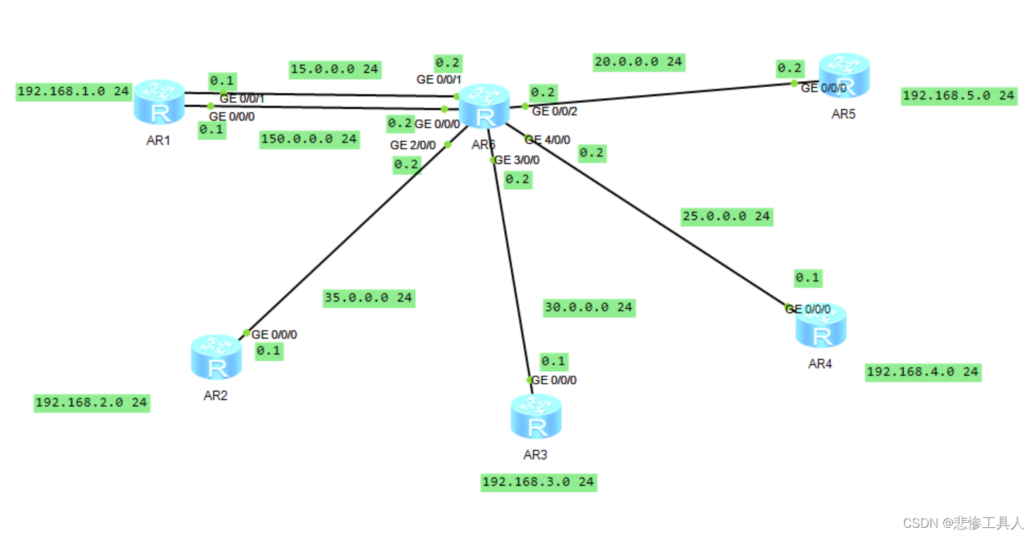 最后启动OSPF,启动方法见OSPF实验报告_悲惨工具人的博客-CSDN博客_ospf实验报告,这里