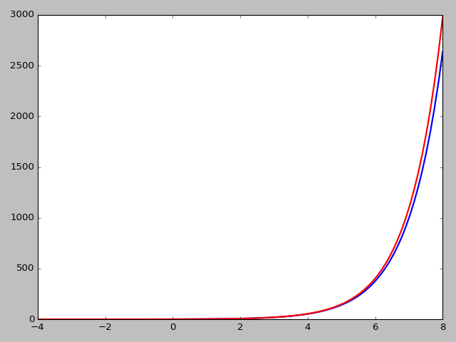 执行结果(红色为实际曲线,蓝色为近似曲线,n越大越接近):