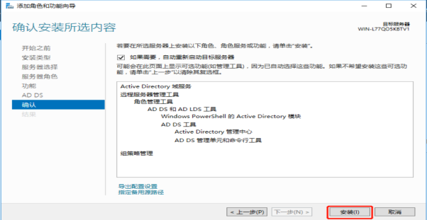 (5)确认刚才添加的服务并安装,有需要勾选安装完自动重启服务器