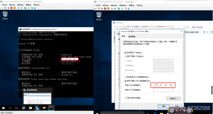 5.进入win10把DNS服务器地址修改为域服务器地址