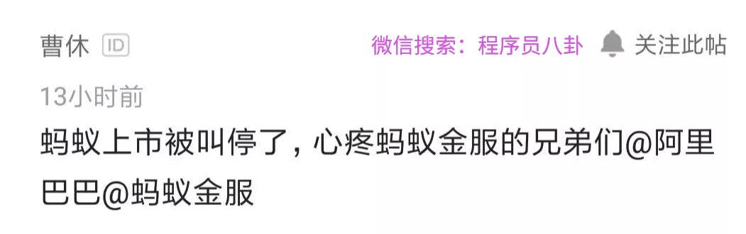 首先表达一下对蚂蚁金服员工的深切同情,毕竟之前大家都以为马上就能实现财务自由,走上人生巅峰,结果来了这么一出,真是世事无常。
