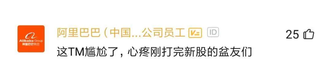 阿里员工爆料,今天楼道里抽烟的人都变多了。唉,股价暴跌,心疼那些刚打完新股的朋友们,抽支烟解解愁吧。