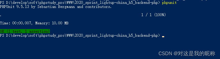 装完后可以运行phpunit --version查看是否安装成功及版本号,如图