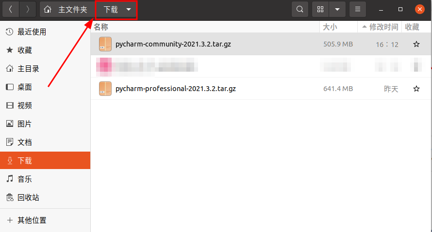 (1)我下载的pycharm放到了下载文件夹中,在下载文件夹——>点击下载。