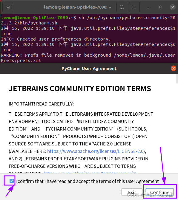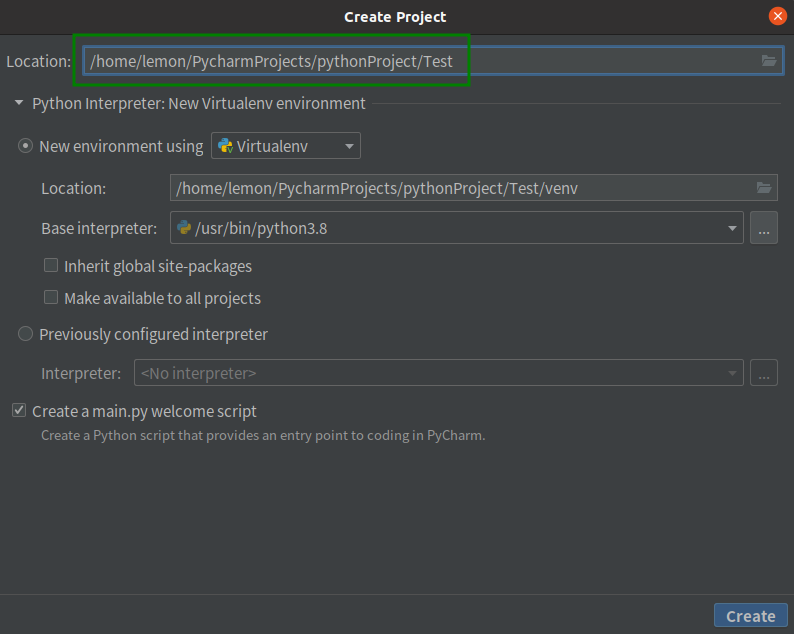 以上就是pycharm的安装过程,我也是第一次接触ubuntun系统,也在网上看了很多教程,这都是向大家学习之后,自己跟着做才弄出来的,希望对于向我这样的新手能有一些帮助。由于为只安装了pycharm,,没有安装python环境,所以接下来我将安装python3.8之后再进行测试。