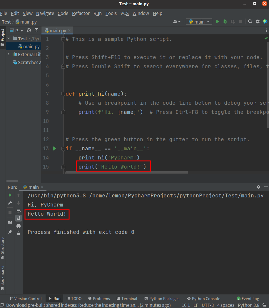 以上就是python3.8.10的安装过程,接下来在pycharm中测试是否能成功运行python程序。