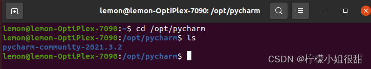 (2)使用cd到解压好的pycharm文件在的那个文件夹。
