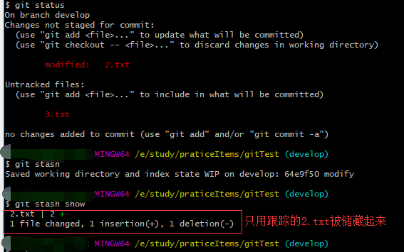 (3)-a 被忽略的文件以及没有被跟踪的文件也会被储藏