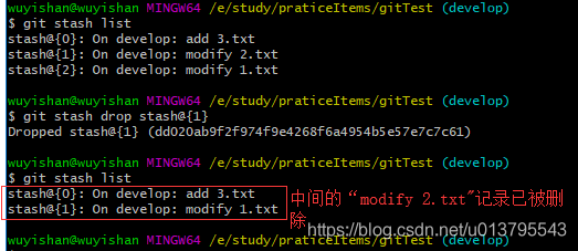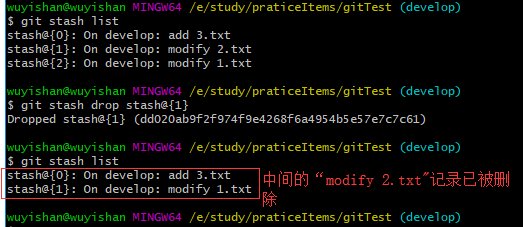 4、drop [-q|--quiet] [<stash>] 删除某一条储藏记录