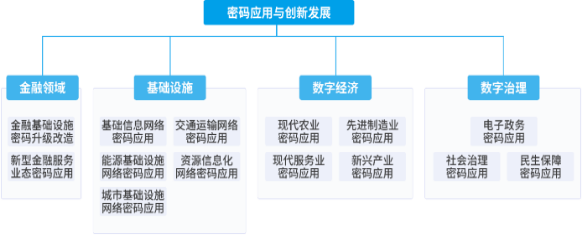 为满足网络空间密码多样化应用的实际需求,商用密码产业应用与创新发展已延伸到金融领域、国家基础设施、数字经济、数字治理等重要领域。商业密码产业引导政策陆续出台,市场需求不断增加,刺激商用密码产业快速发展。
