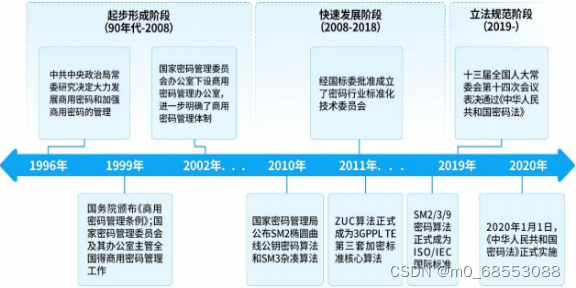 (1)中国商用密码行业发展情况:中国商用密码发展起步较晚,历程始于近现代密码时代。整体来看,我国商用密码经历了起步形成、快速发展、立法规范三个发展阶段。