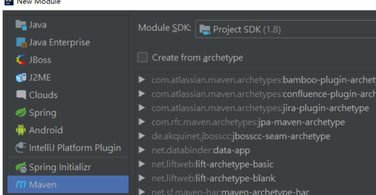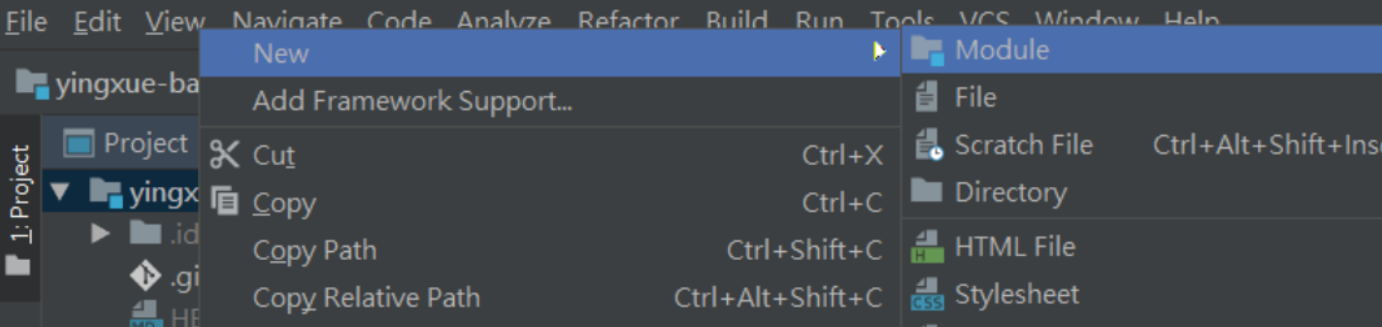 - 选择项目根目录右键呼出菜单,选择New -> Module