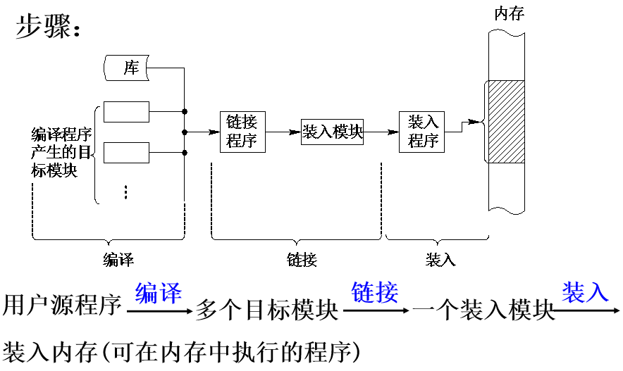 一个用户源程序变为可在内存中执行的程序