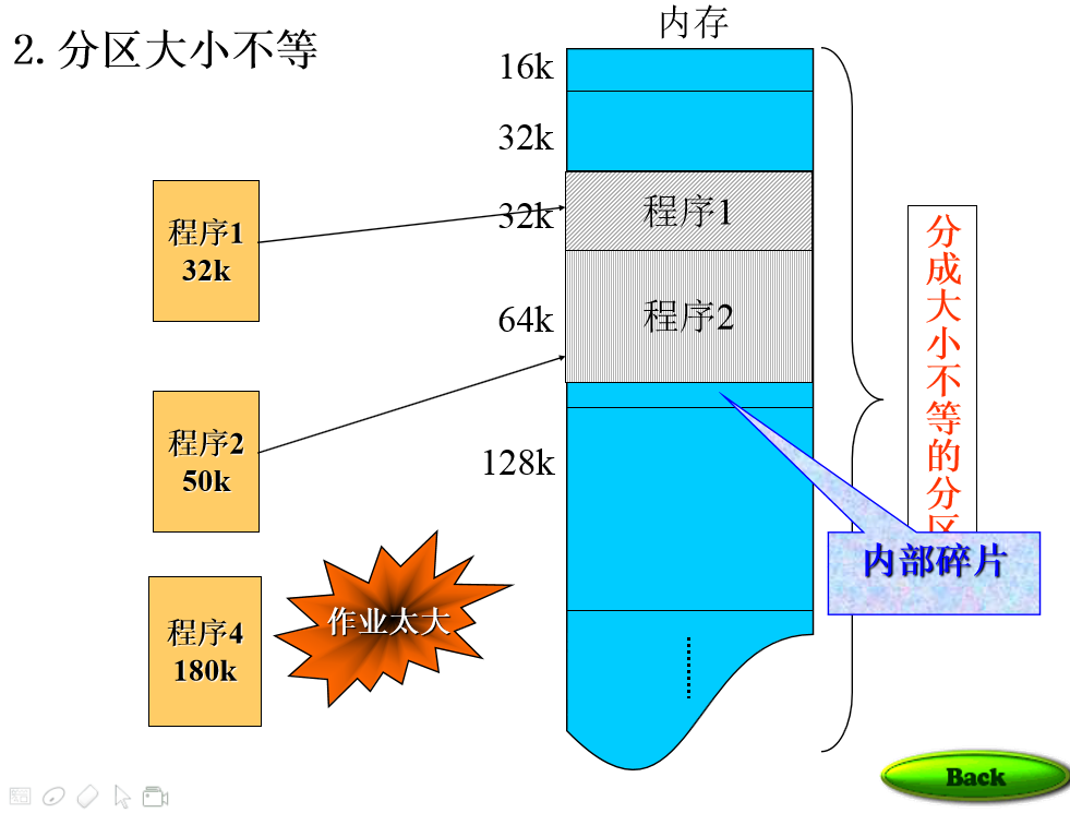 外部碎片:----剩余部分很长一段时间都不可分配给其他程序