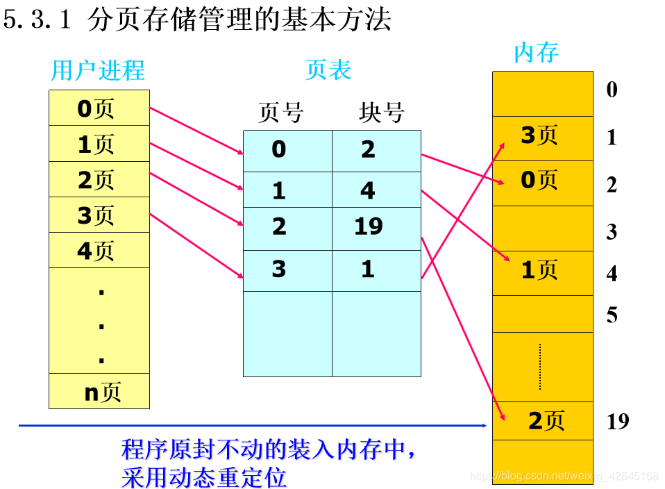 为进程分配内存时,以块为单位将进程的若干页分别装入到不相临接的物理块中