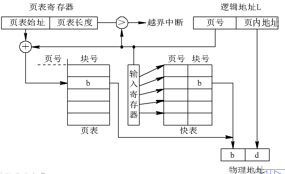 a.将物理块号与页内偏移拼接得到物理地址