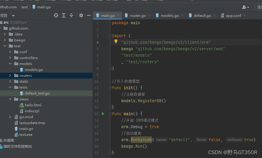 main.go引入数据模型并注册数据库