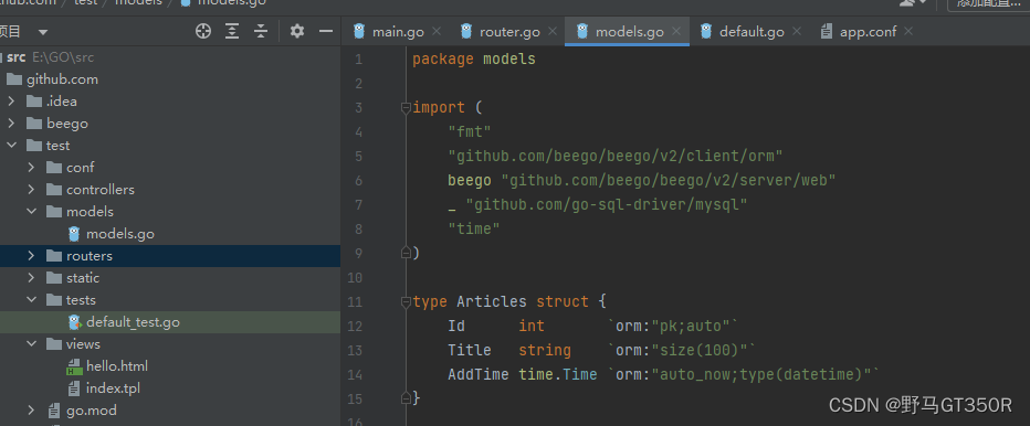 数据表结构模型定义在Models.go中
