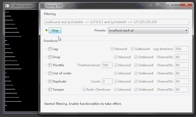 Windows 在互联网浪潮中使用较少, 作者也找到了类似功能的工具 Clumsy 方便熟悉Windows 技术栈的读者;从使用的角度来讲, 这款小工具比 TC/Netem的使用更加灵活方便;