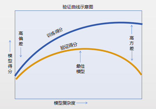 ④当使用复杂度适中的模型时,验证曲线得分最高(偏差与方差达到均衡)