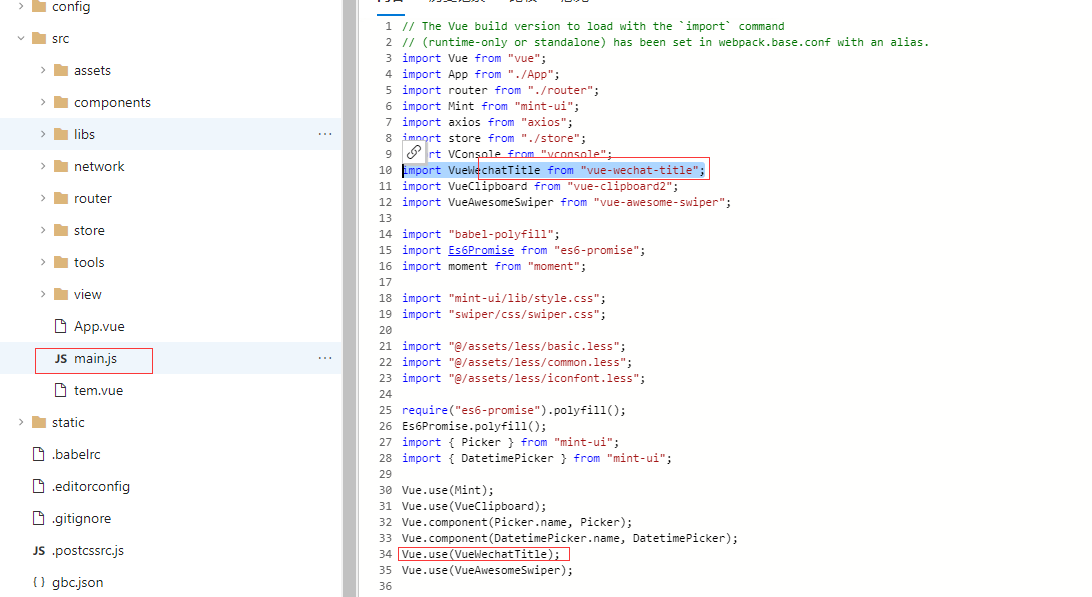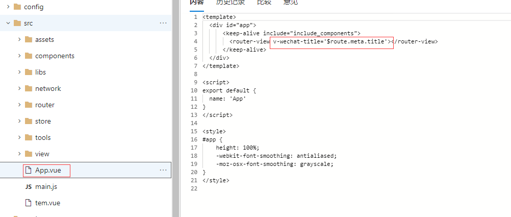 main.js、App.vue引用了vue-wechat-title(动态改变页面title值)