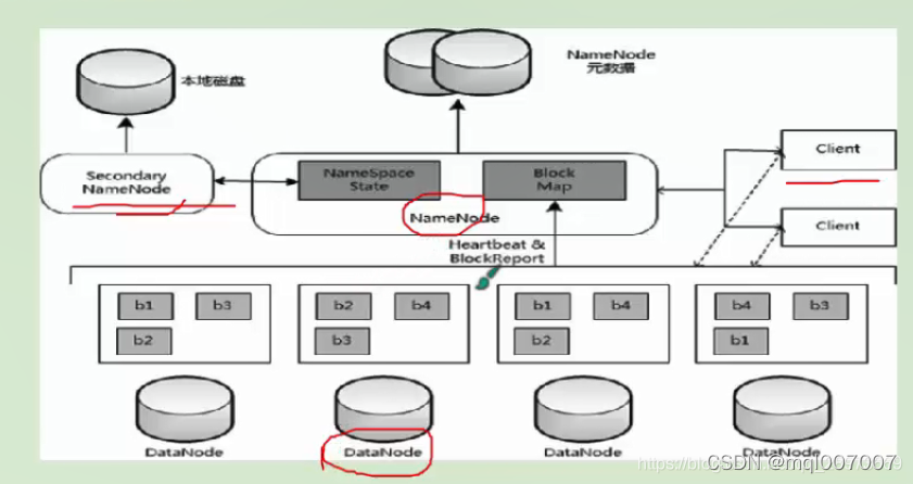 元数据信息:FsImage + Editlog多份存储,保证不丢数据且快速恢复