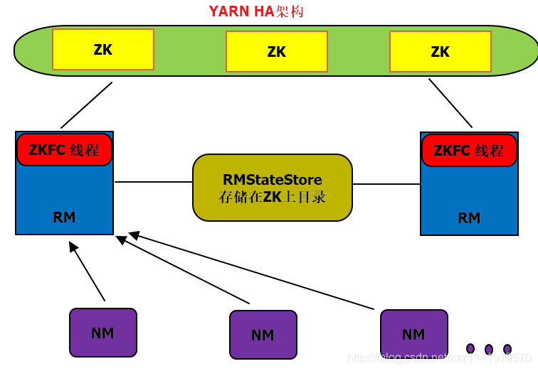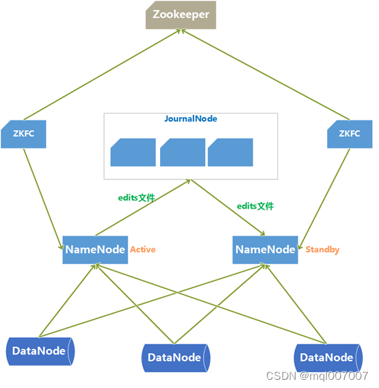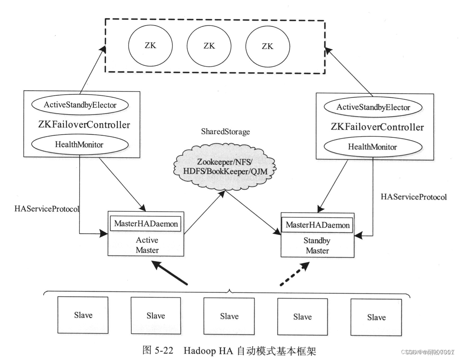实现HA方案,类似HDFS的HA方案,但没有共享存储,直接存储在Zookeeper上,具体包括下面几个重要组件: