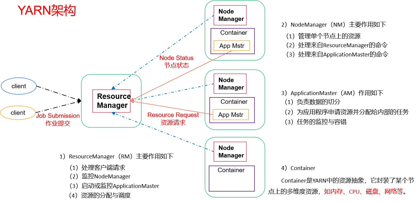 ResourceManager 实时掌握 Container 的运行状态,若在一定时间内 ApplicationMaster 没有启动已经分配到的 Container, 则 ResourceManager 会将其收回;若 Container 在运行过程中,由于意外原因导致运行失败,则 ResourceManager 会 通知 ApplicationMaster,