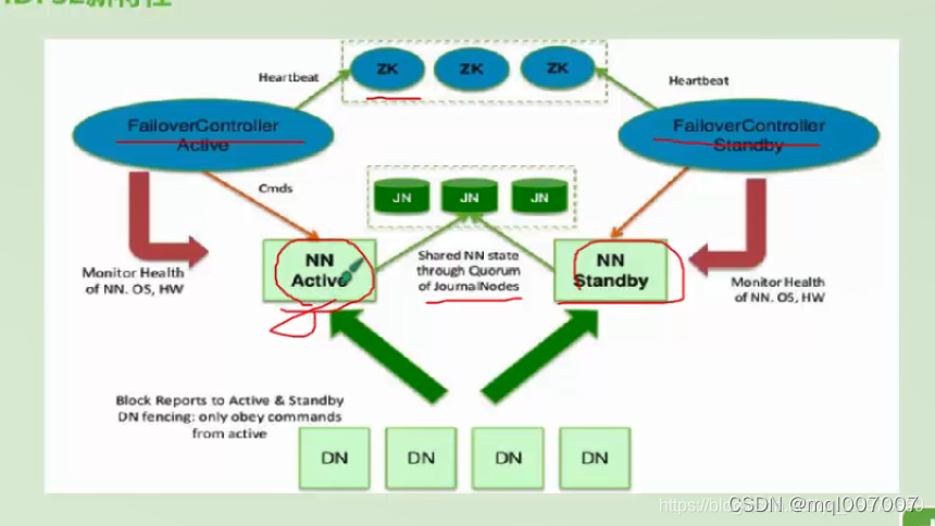 Heartbeat:检测NameNode、DataNode等节点是否失效。