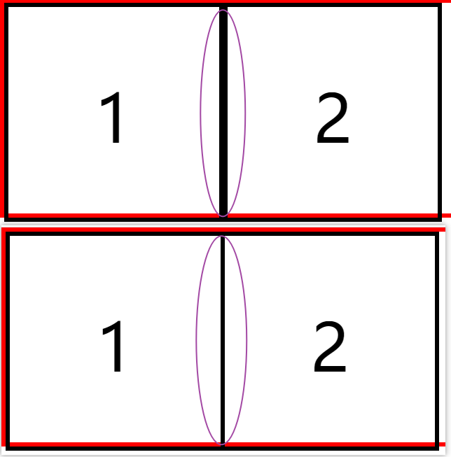 然后我们消除盒子边框叠加的效果,明显感觉到叠加的部分更粗。 下图就是放大后的效果,明显可以看到盒子1、盒子2边框叠加部分是比盒子的其他边的黑边框更粗。这是,我们需要给左边盒子一个margin-right:-1px;或者给右边的盒子一个margin-left:-1px;这里的外边距的值是根据我们设置的边框来定的。